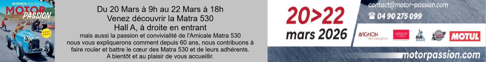 2027 : L'Amicale célébrera le soixantenaire de la Matra 530 et prévoie d'en réunir une soixantaine à Romorantin pour cette occasion.